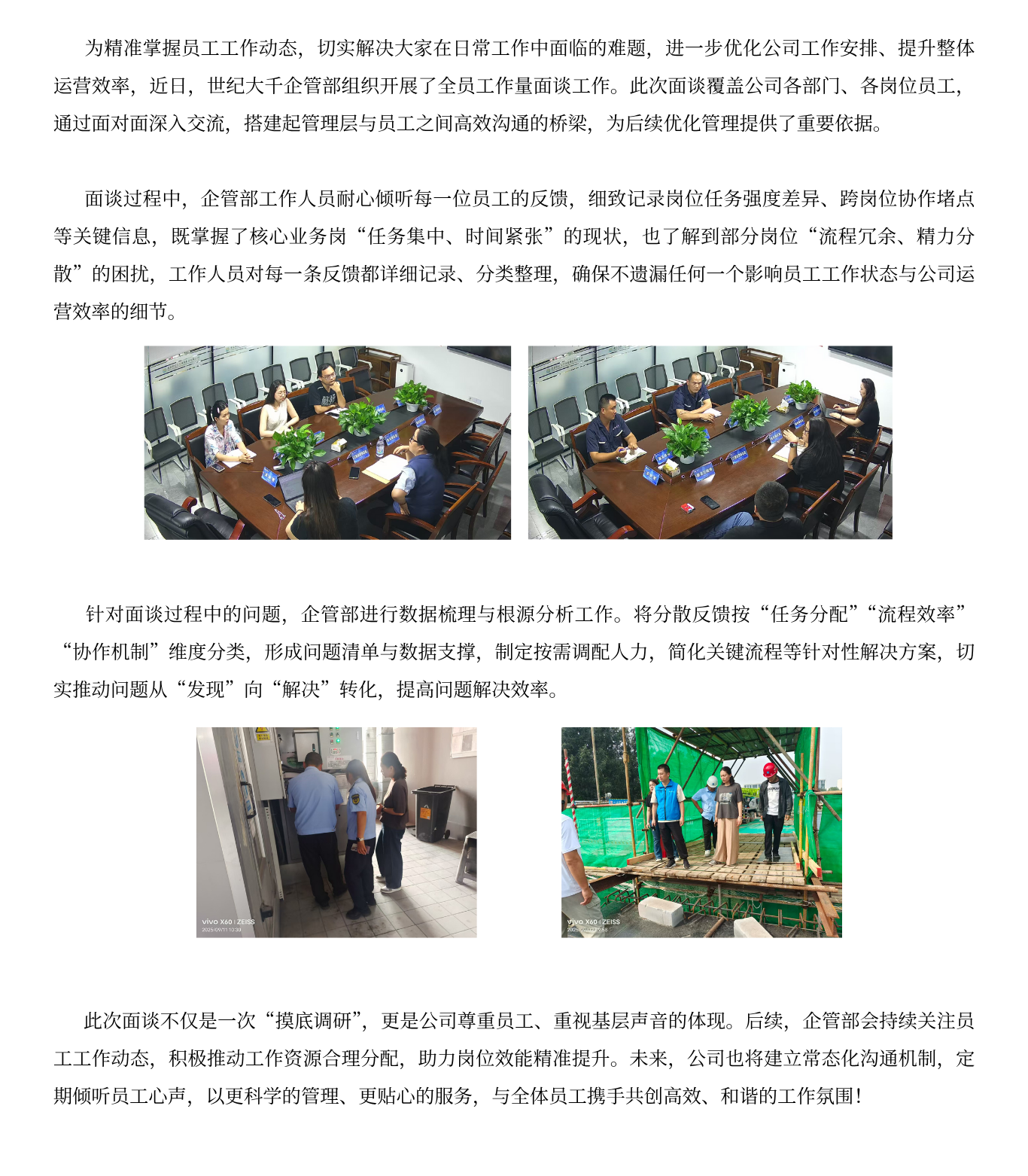 倾听员工心声,优化管理效能|世纪大千企管部开展全员工作量面谈